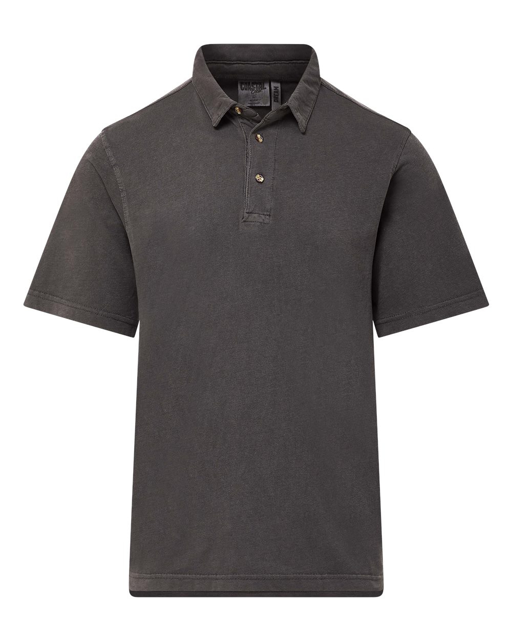 - Three-button placket with ivory buttons