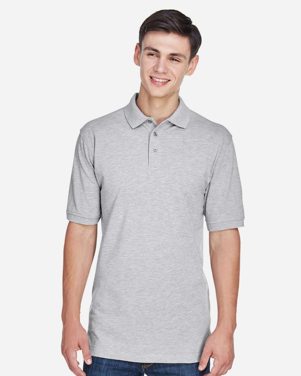 65/35 polyester/cotton piquŽ Reduced shrinkage Wrinkle-resistant Flat-knit collar and cuffs Set-in sleeves Side seams Three-button placket Hemmed...