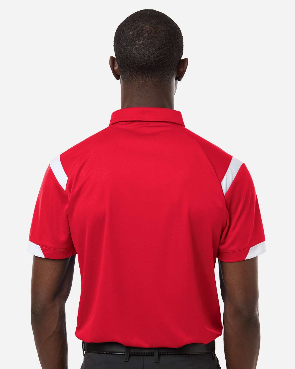 4oz./yd_., 100% polyester Self-collar Pipped accent on placket Contrasting color inserts on shoulder and sleeve cuff Side vent