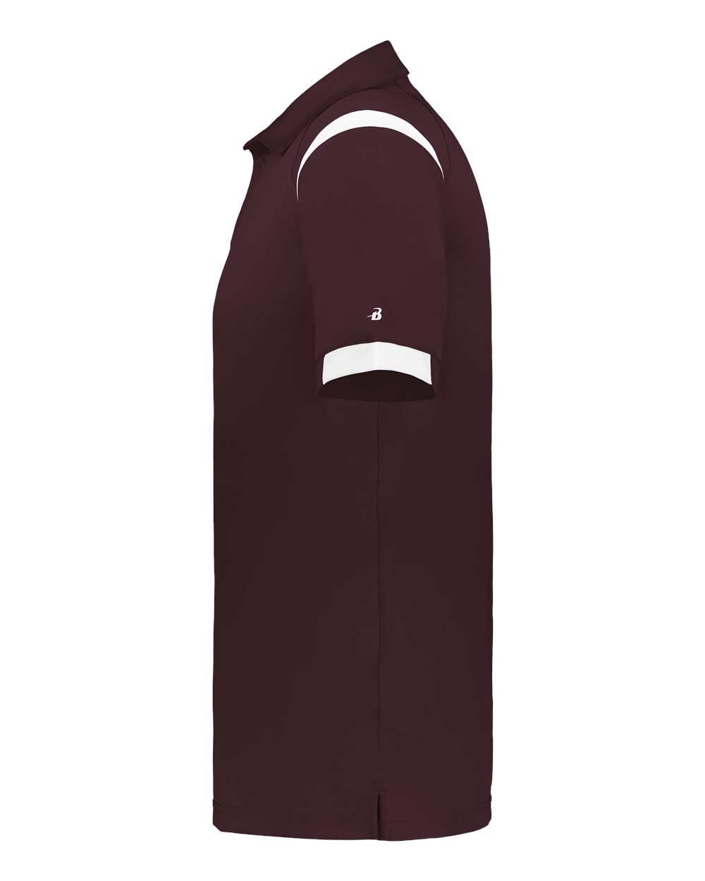 4oz./yd_., 100% polyester Self-collar Pipped accent on placket Contrasting color inserts on shoulder and sleeve cuff Side vent