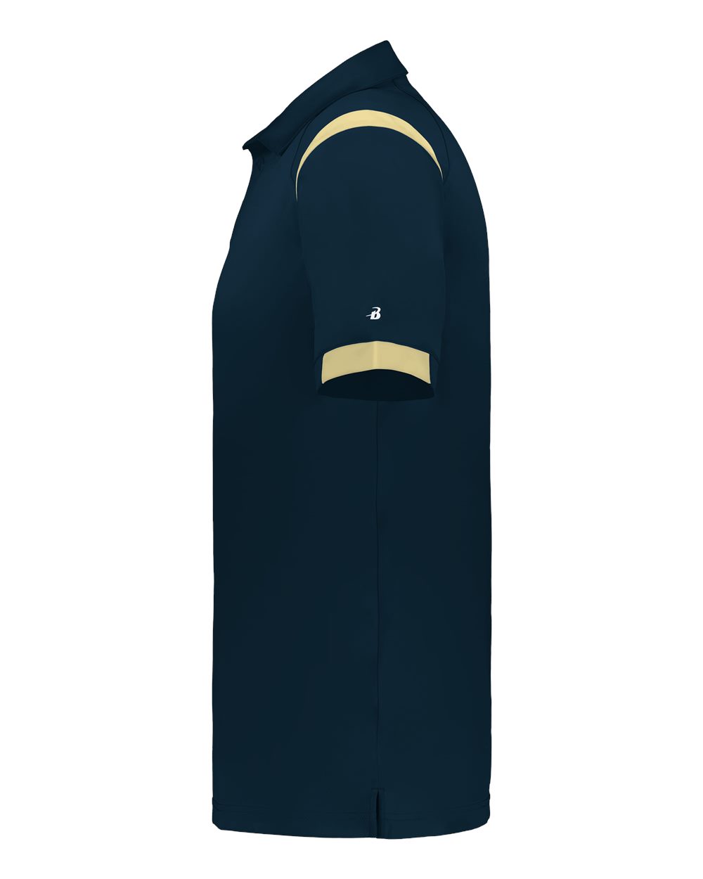 4oz./yd_., 100% polyester Self-collar Pipped accent on placket Contrasting color inserts on shoulder and sleeve cuff Side vent