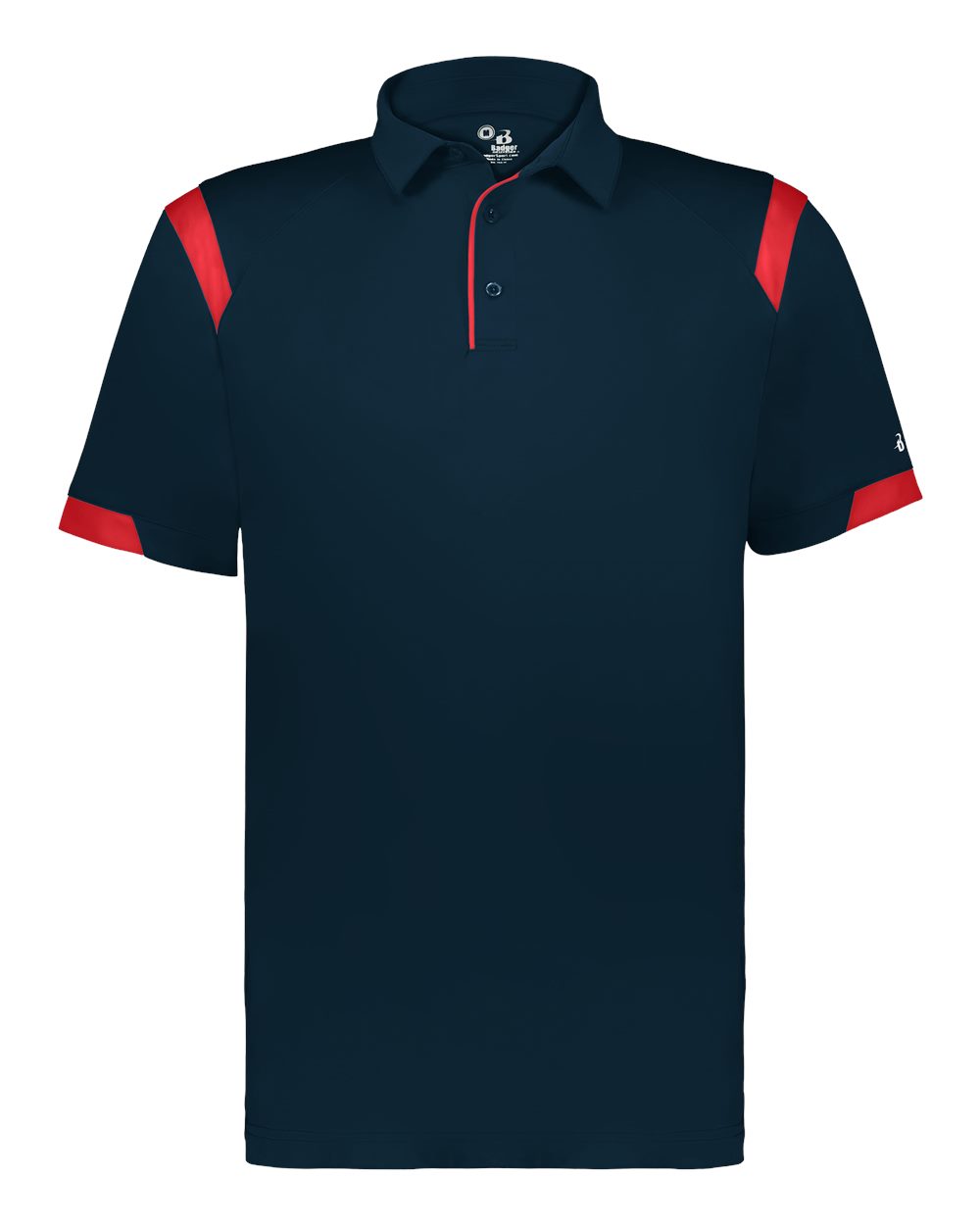 4oz./yd_., 100% polyester Self-collar Pipped accent on placket Contrasting color inserts on shoulder and sleeve cuff Side vent