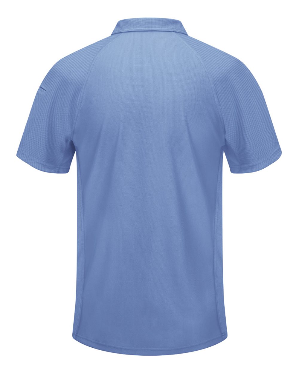 - Mesh fabric on underarm gussets and back of garment provide superior wickability