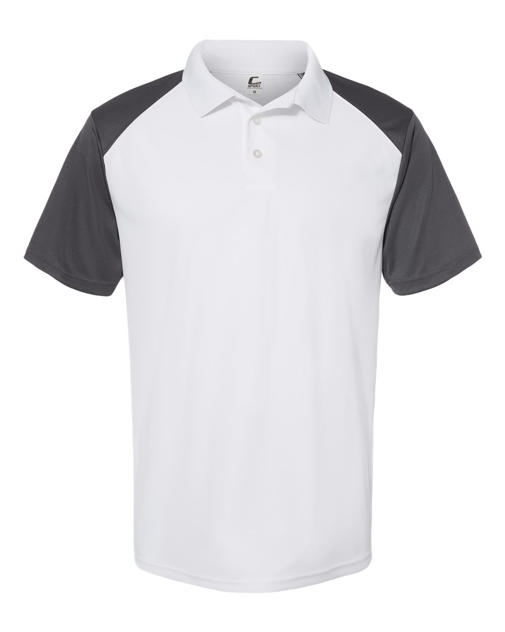 3.5 oz./yd_, 100% polyester moisture-management/antimicrobial performance fabric Shoulder panels Three button placket Solid knit collar Taped back neck...