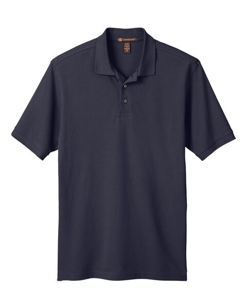 100% ringspun cotton pique Topstitching throughout Side seams Three-button placket Horn-style buttons