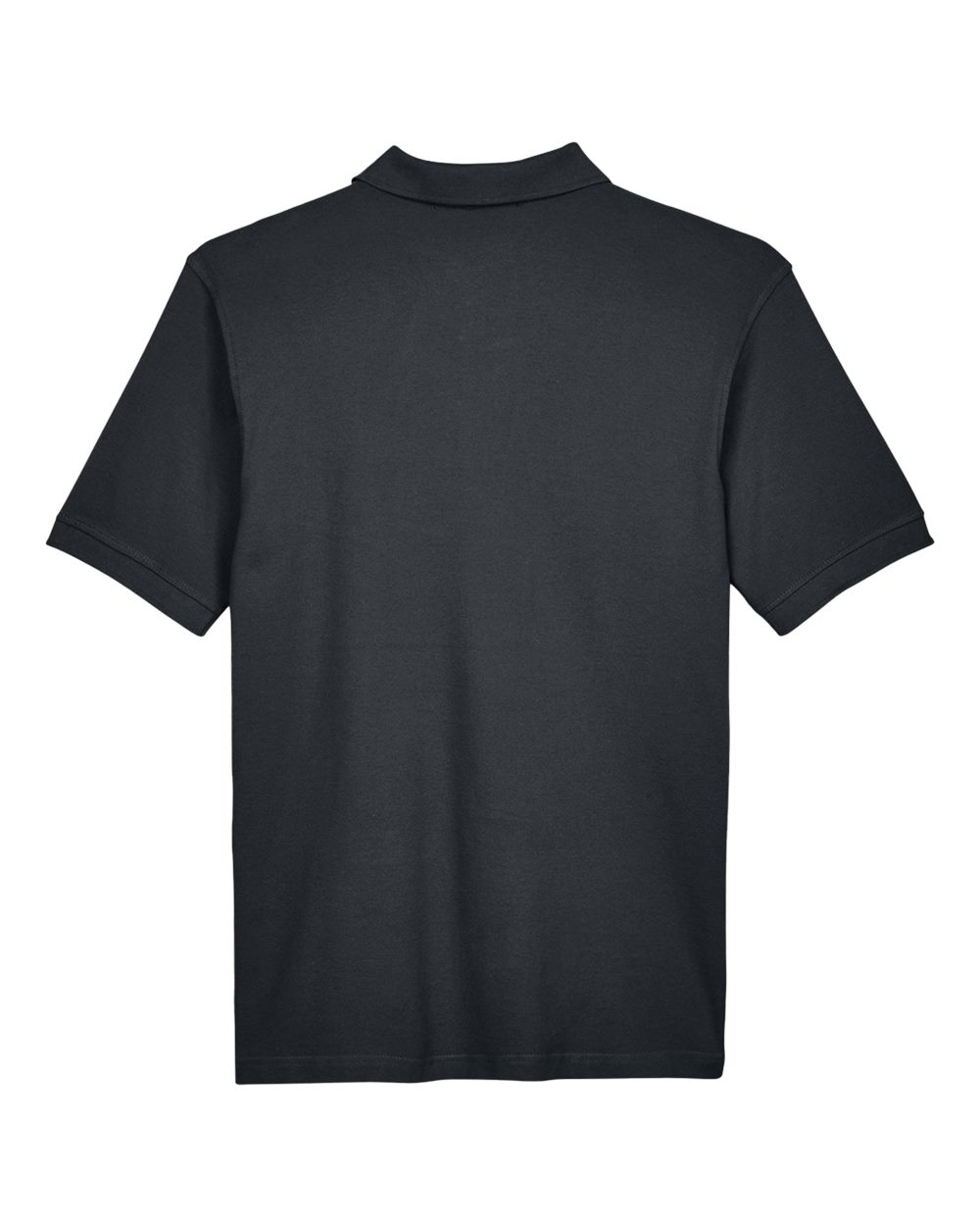 100% ringspun cotton pique Topstitching throughout Side seams Three-button placket Horn-style buttons