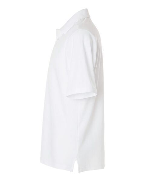 5 oz/yd_ (US), 8.4 oz/L yd (CA), 60/40 cotton/polyester pique Matching knit collar Three-button placket Side vents UPF 15-39 Tear away label