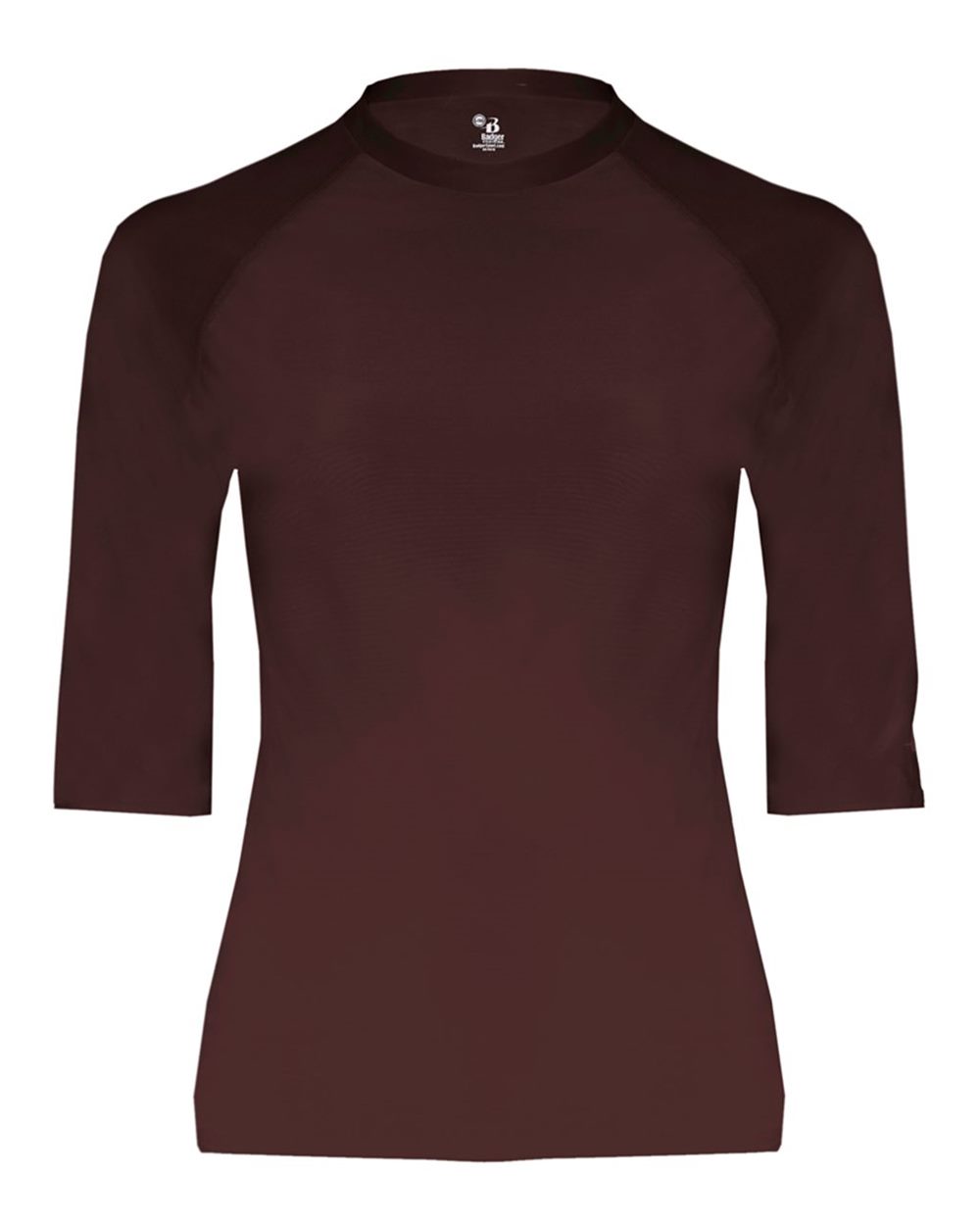 83/17 polyester/spandex moisture-management fabric Stretch body fit Self-fabric collar Double-needle hem Badger heat seal logo on left sleeve Heat...