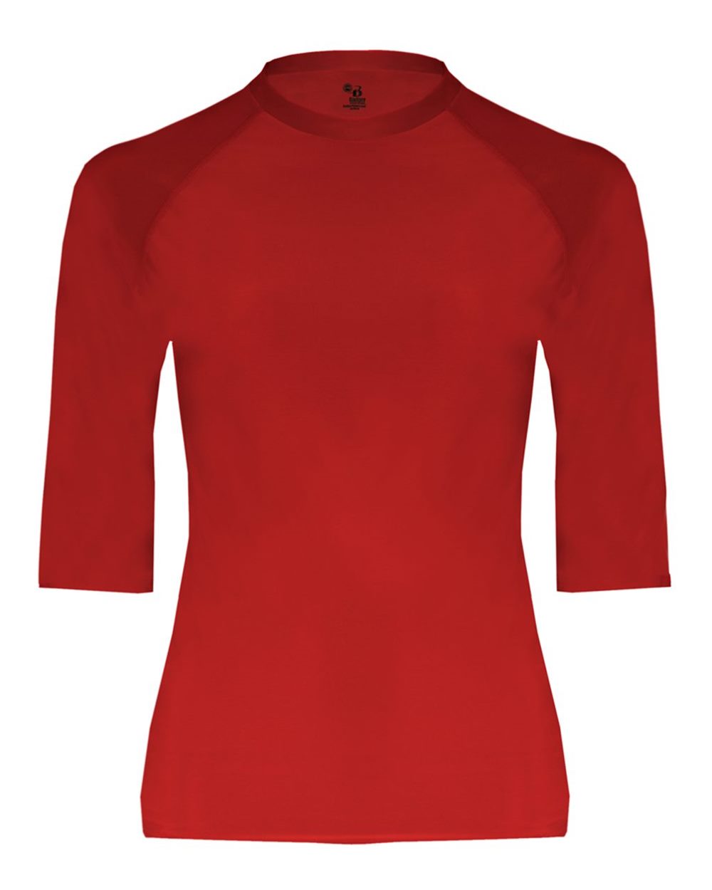83/17 polyester/spandex moisture-management fabric Stretch body fit Self-fabric collar Double-needle hem Badger heat seal logo on left sleeve Heat...