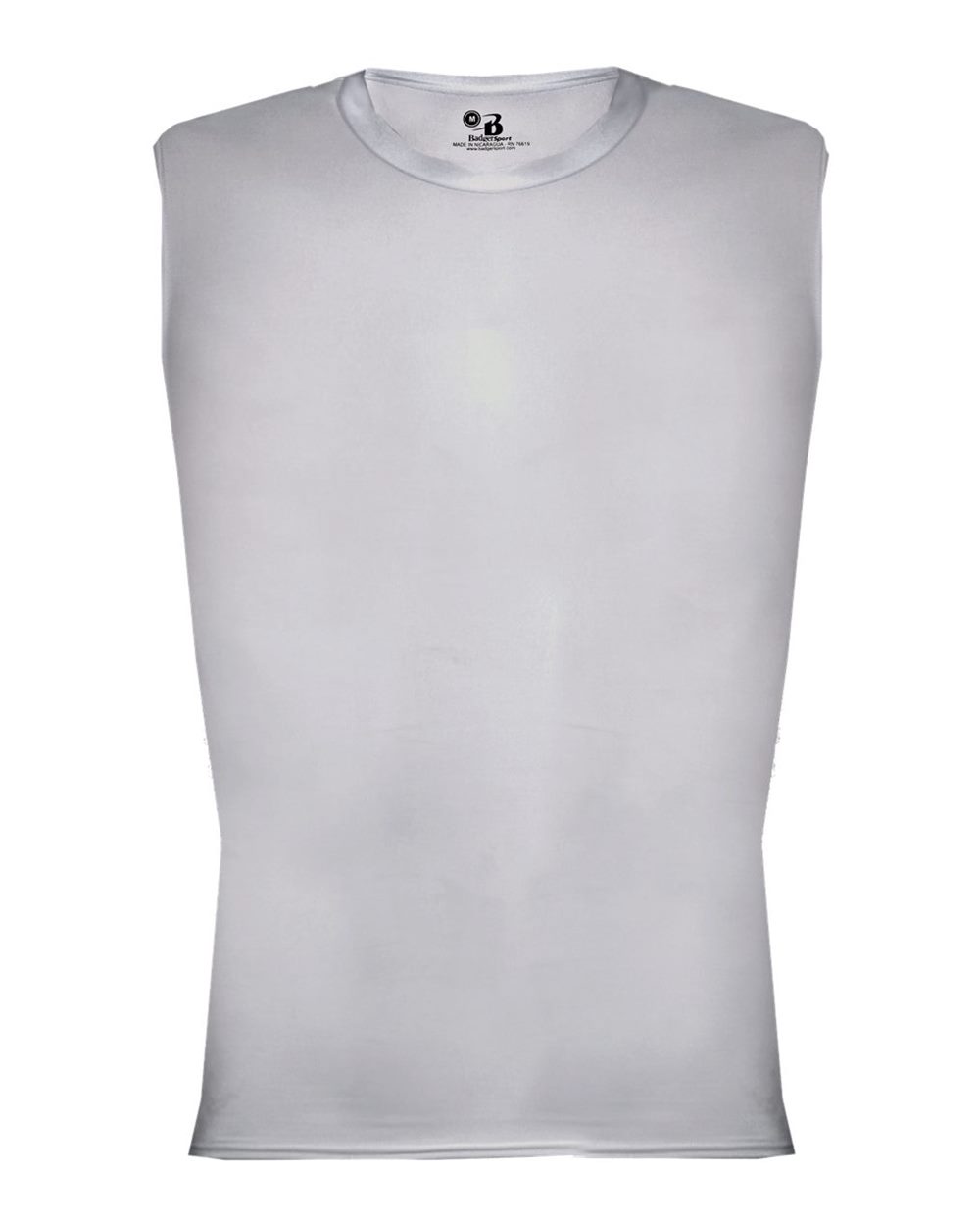 83/17 polyester/spandex moisture-management fabric Stretch body fit Self-fabric collar Double-needle hem Badger heat seal logo on center back neck...