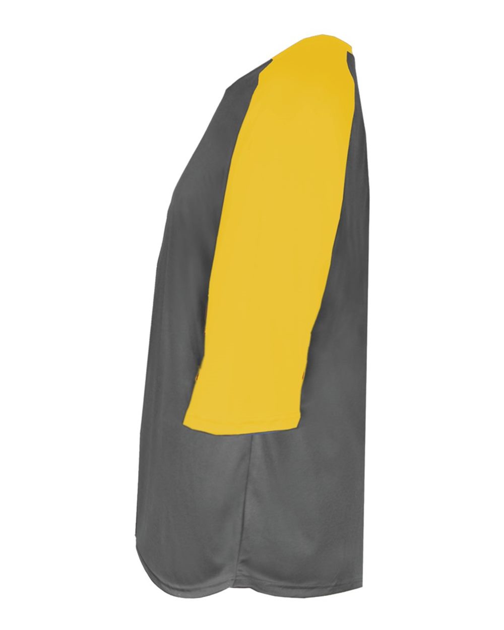 3.5 oz./yd_, 100% polyester moisture-management/antimicrobial performance fabric Contrasting 3/4 raglan sleeves Contrast self-fabric collar...