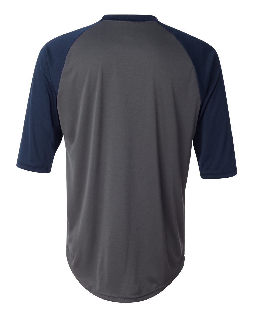 3.5 oz./yd_, 100% polyester moisture-management/antimicrobial performance fabric Contrasting 3/4 raglan sleeves Contrast self-fabric collar...