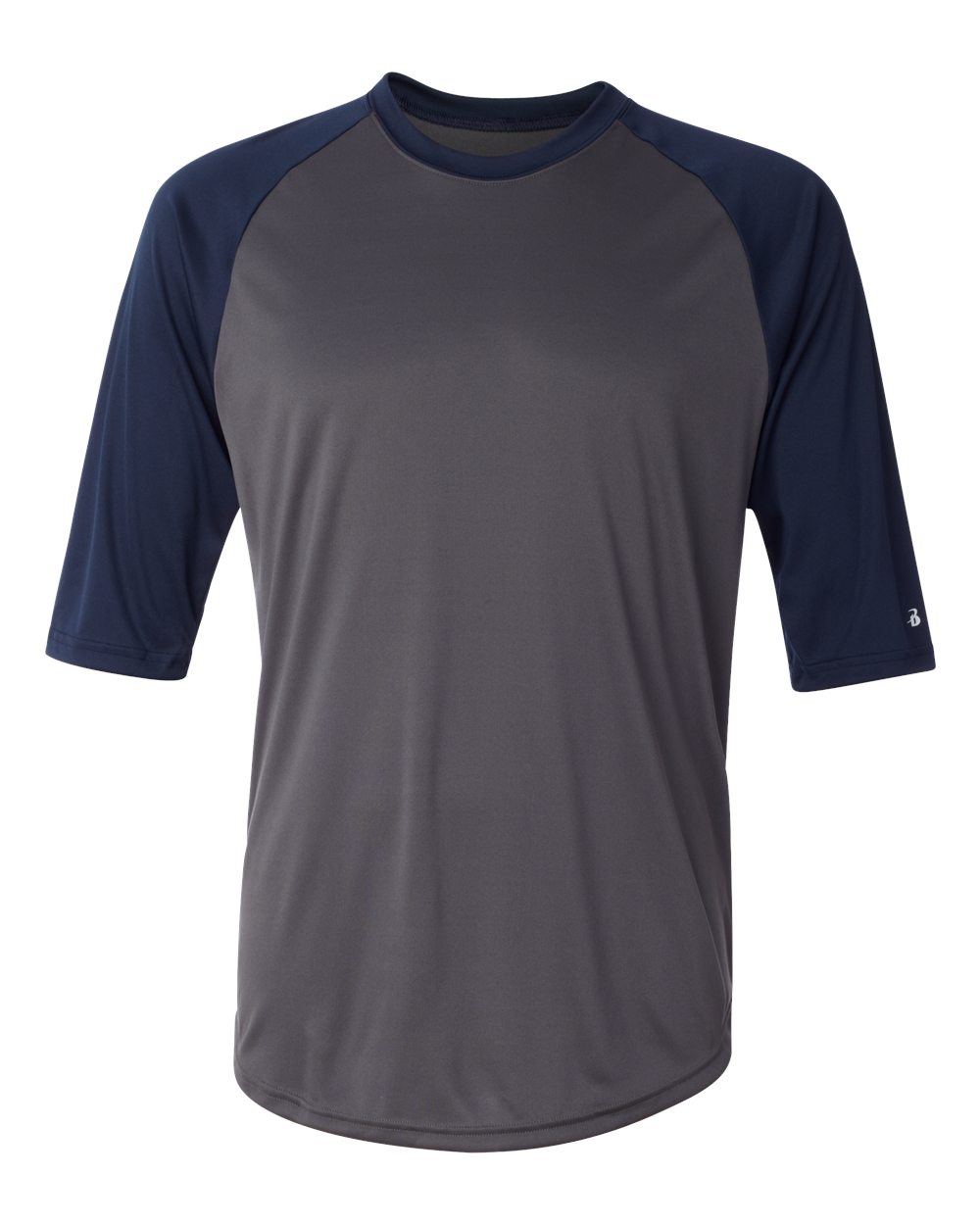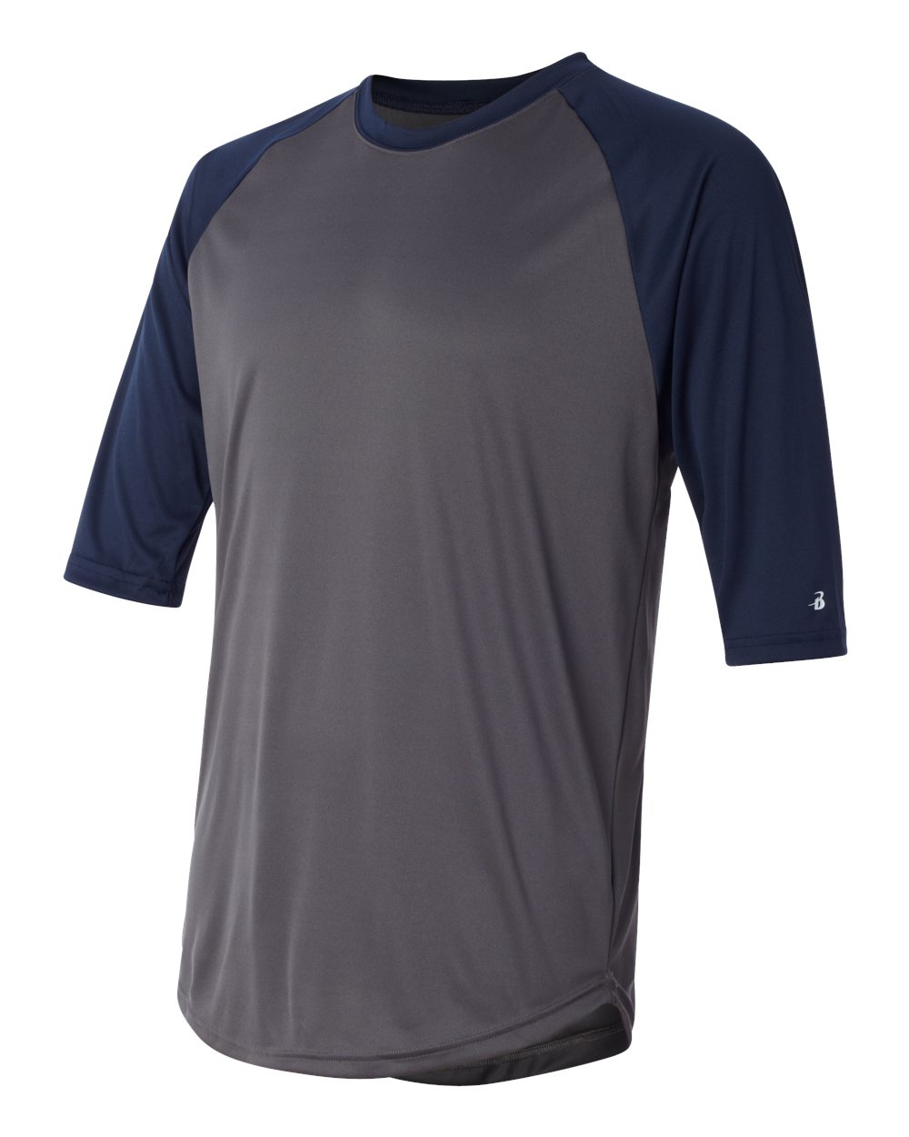 3.5 oz./yd_, 100% polyester moisture-management/antimicrobial performance fabric Contrasting 3/4 raglan sleeves Contrast self-fabric collar...