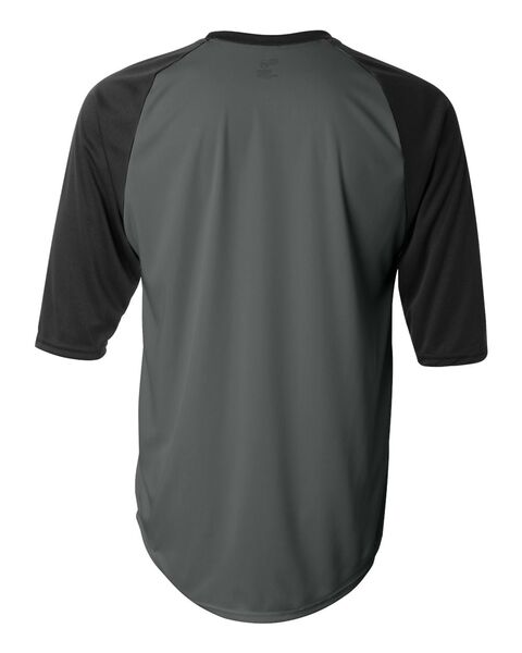 3.5 oz./yd_, 100% polyester moisture-management/antimicrobial performance fabric Contrasting 3/4 raglan sleeves Contrast self-fabric collar...