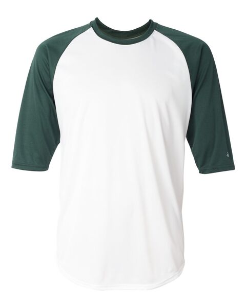 3.5 oz./yd_, 100% polyester moisture-management/antimicrobial performance fabric Contrasting 3/4 raglan sleeves Contrast self-fabric collar...