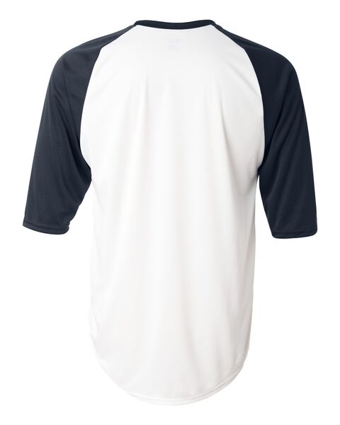3.5 oz./yd_, 100% polyester moisture-management/antimicrobial performance fabric Contrasting 3/4 raglan sleeves Contrast self-fabric collar...