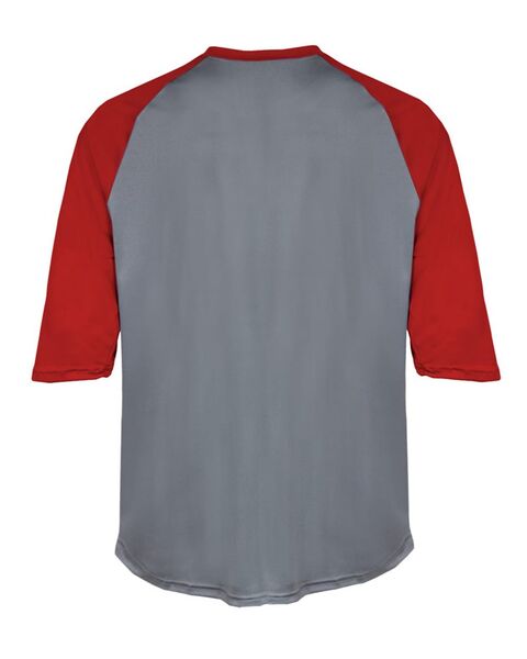 3.5 oz./yd_, 100% polyester moisture-management/antimicrobial performance fabric Contrasting 3/4 raglan sleeves Contrast self-fabric collar...