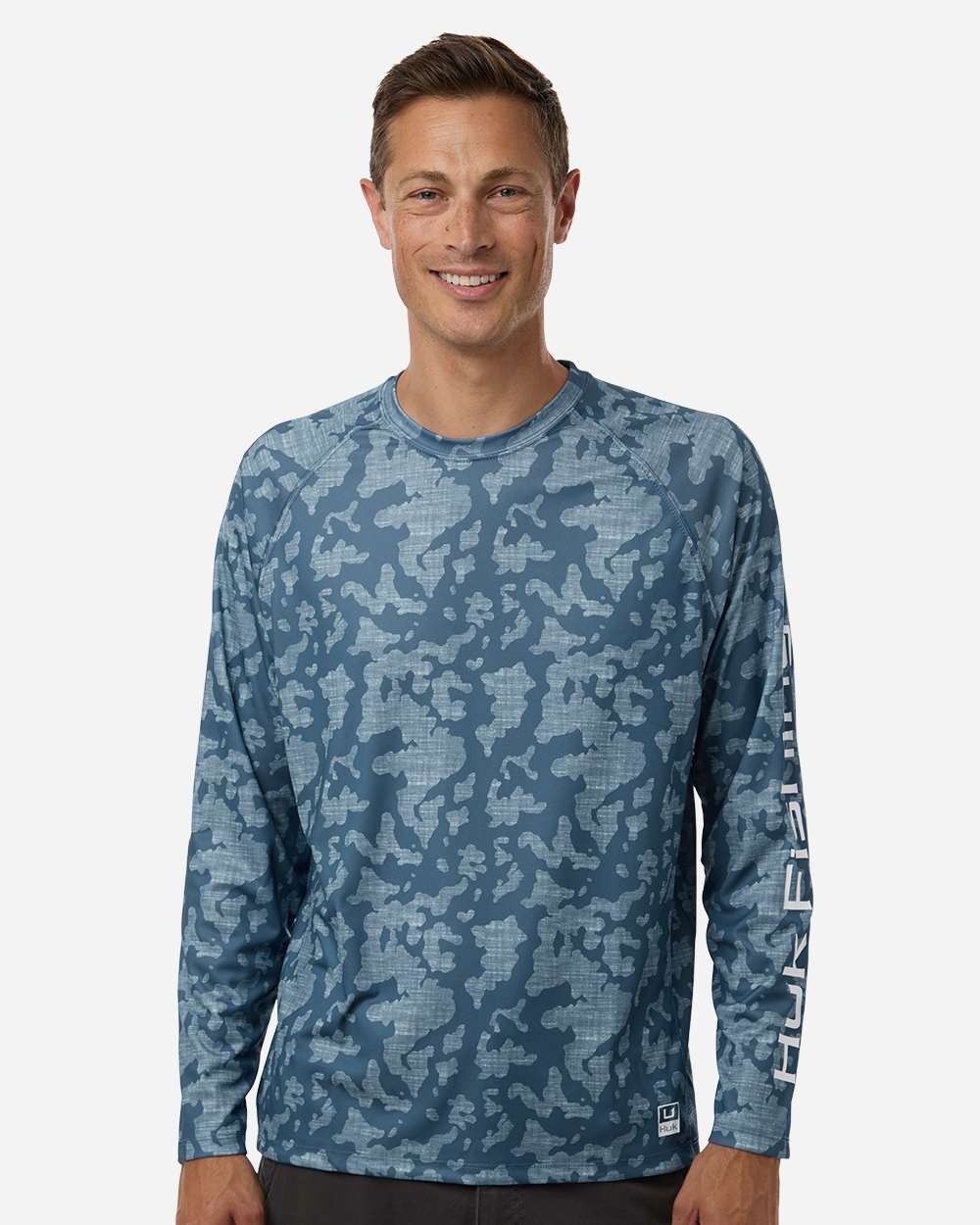 100% polyester Moisture-management performance UPF 50+ protection Anti-microbial properties HUK branding on left hip and sleeve