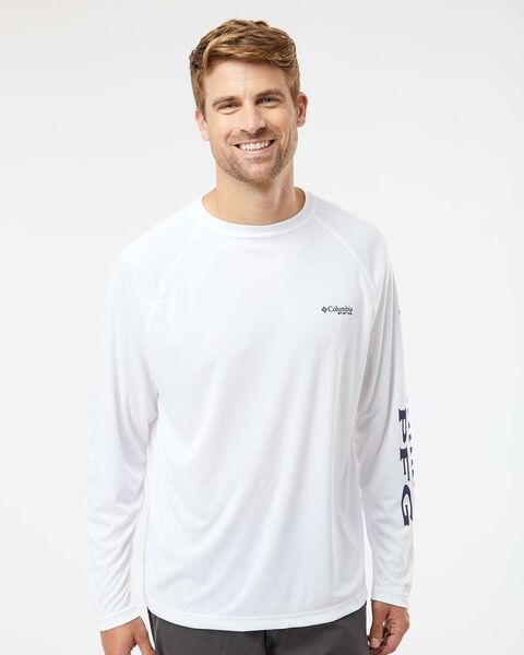 - Heat sealed Columbia logo on left chest & Columbia PFG on left sleeve