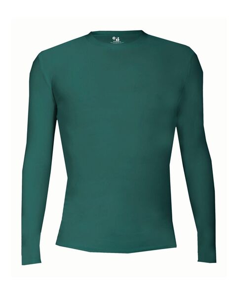 83/17 polyester/spandex moisture-management fabric Stretch body fit Self-fabric collar Double-needle hem Badger heat seal logo on left sleeve Heat...