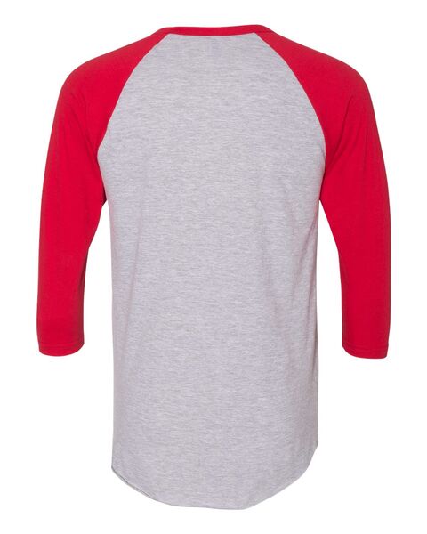 3.6 oz./yd_ (US) 6 oz./L yd (CA), 50/50 combed ring-spun cotton/polyester Unisex style Slim fit 3/4" neck rib binding Raglan 3/4 sleeves...