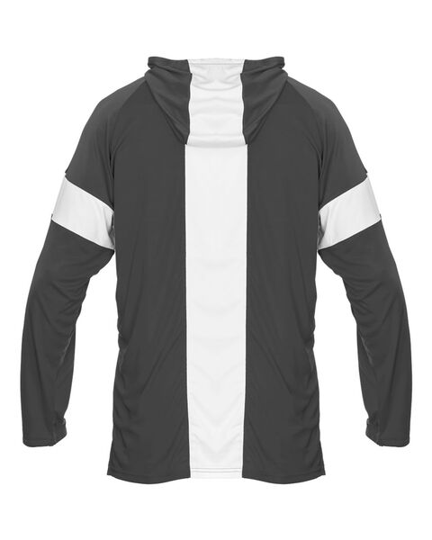 • Body color cross over neck hoodie with 4" contrast-color inserts