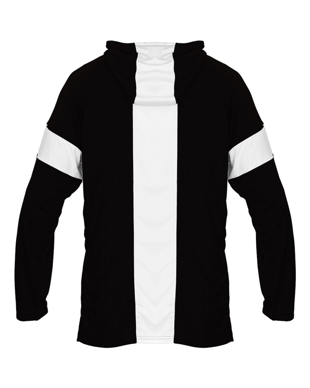 - Body color cross over neck hoodie with 4" contrast-color inserts