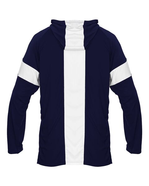 • Body color cross over neck hoodie with 4" contrast-color inserts
