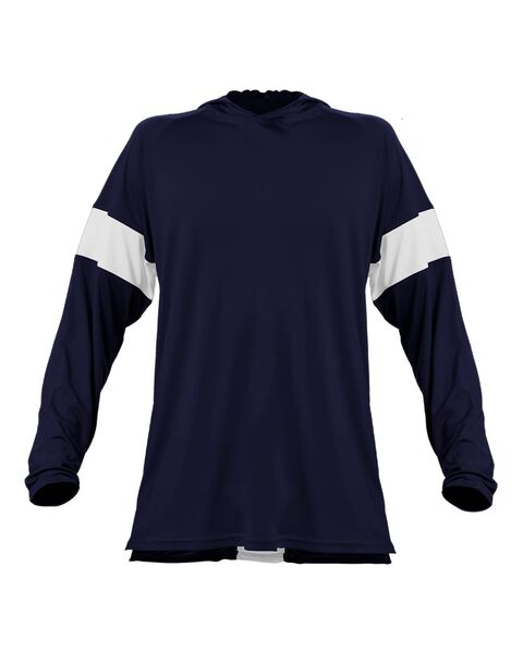 • Body color cross over neck hoodie with 4" contrast-color inserts
