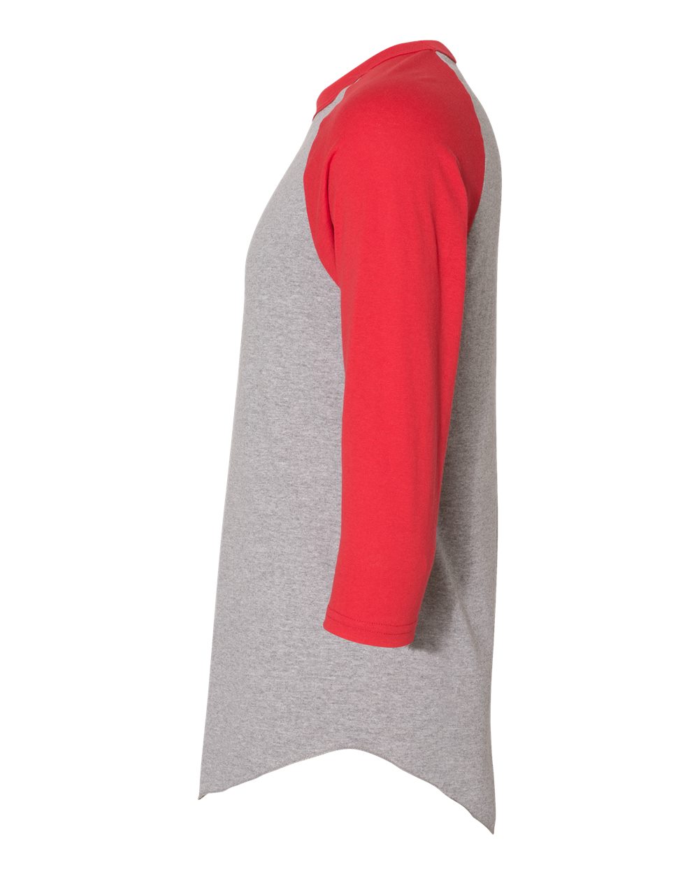 4.8 oz./yd_, 50/50 cotton/polyester Contrast-color 1x1 rib collar and raglan sleeves Double-needle hemmed sleeves Serged fishtail bottom Tear away label
