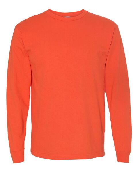 5.4 oz./yd_, 100% cotton Dark Ash is 90/10 cotton/polyester Pre-shrunk Open-end yarn 1" fashion collar Shoulder-to-shoulder taping Ribbed cuff...