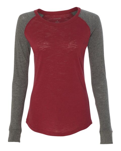 4.3 oz./yd_, 60/40 cotton/ polyester slub jersey Slub finish adds a subtle texture Feminine fit with a flattering neckline Contrast-color elbow patches...