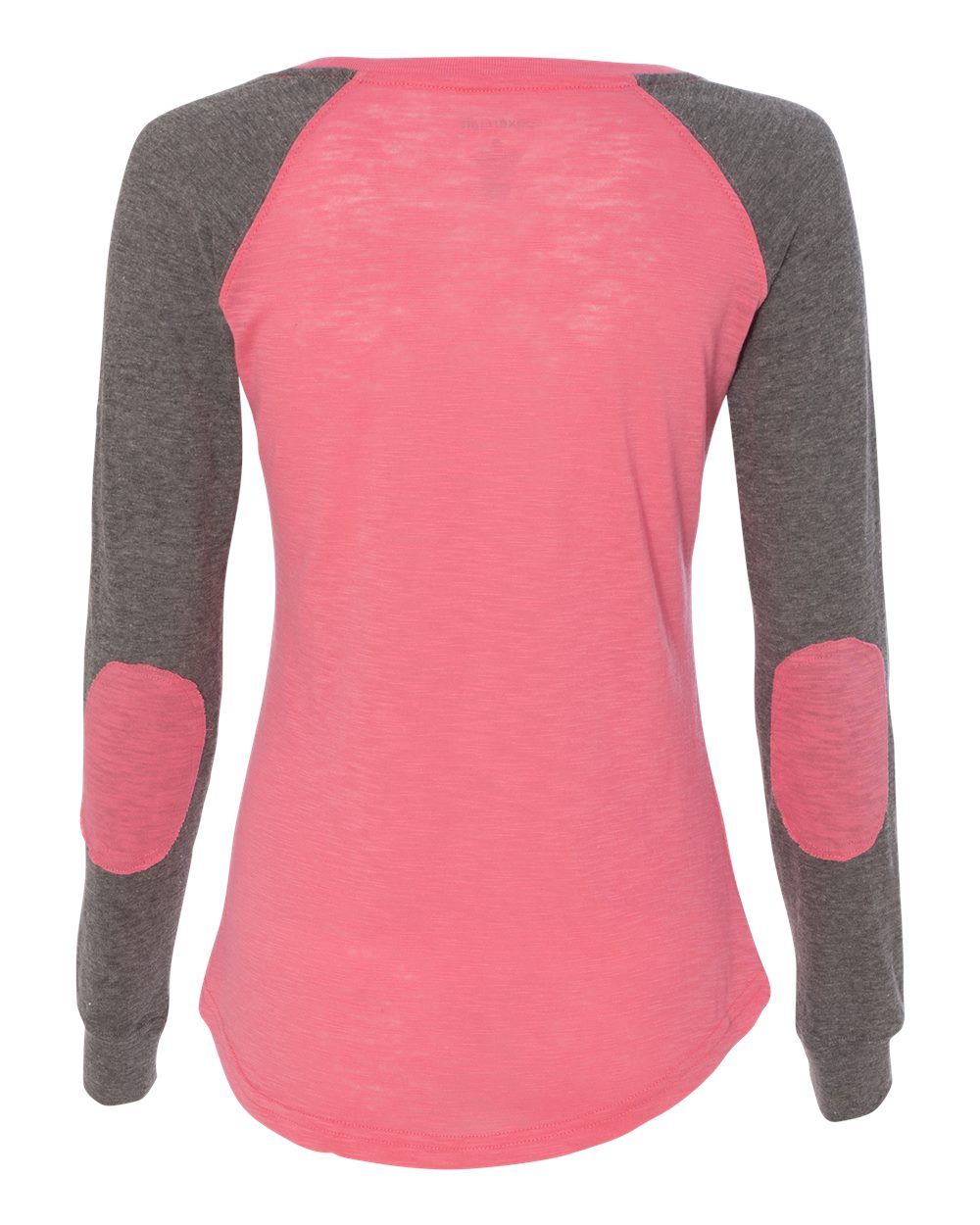 4.3 oz./yd_, 60/40 cotton/ polyester slub jersey Slub finish adds a subtle texture Feminine fit with a flattering neckline Contrast-color elbow patches...