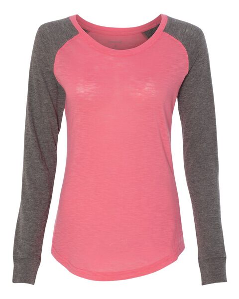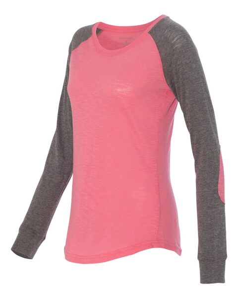 4.3 oz./yd_, 60/40 cotton/ polyester slub jersey Slub finish adds a subtle texture Feminine fit with a flattering neckline Contrast-color elbow patches...