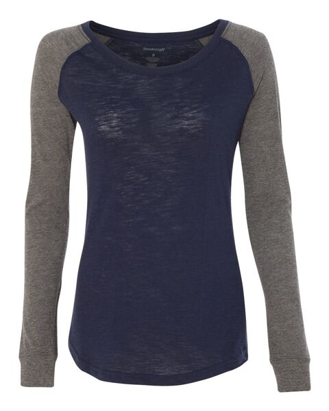 4.3 oz./yd_, 60/40 cotton/ polyester slub jersey Slub finish adds a subtle texture Feminine fit with a flattering neckline Contrast-color elbow patches...