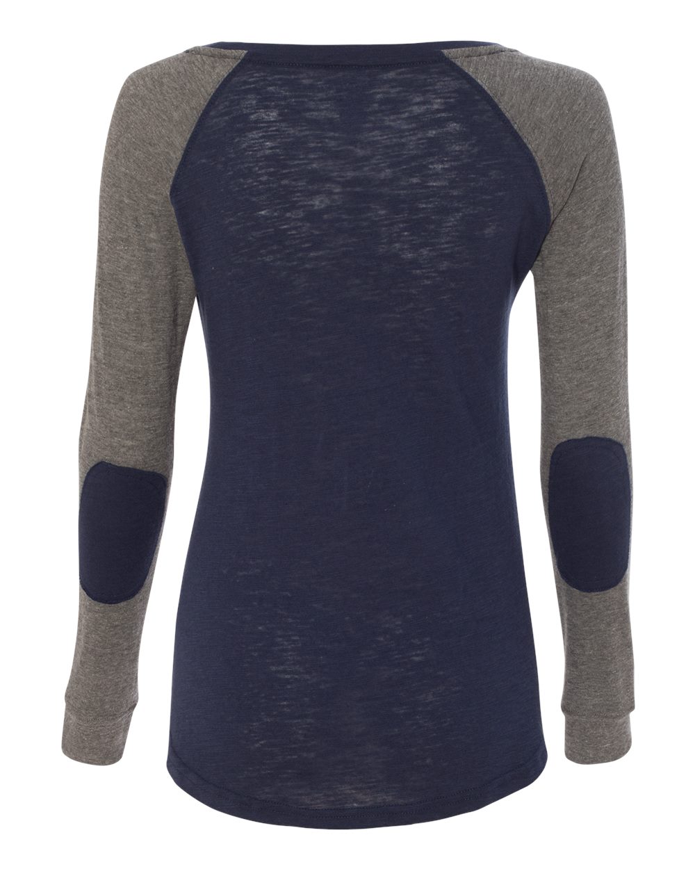 4.3 oz./yd_, 60/40 cotton/ polyester slub jersey Slub finish adds a subtle texture Feminine fit with a flattering neckline Contrast-color elbow patches...