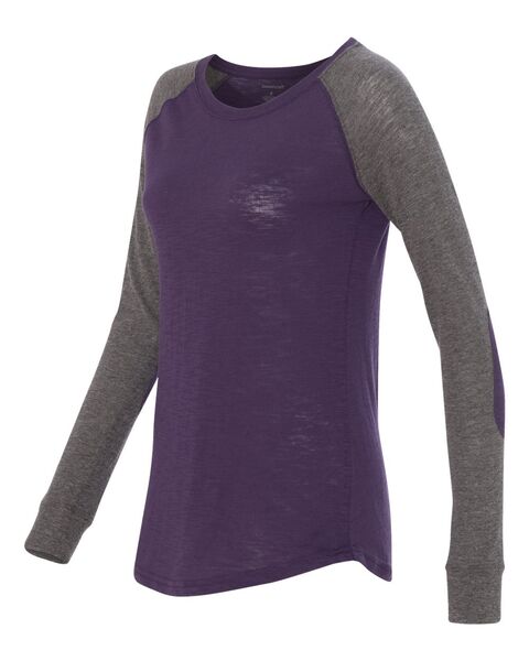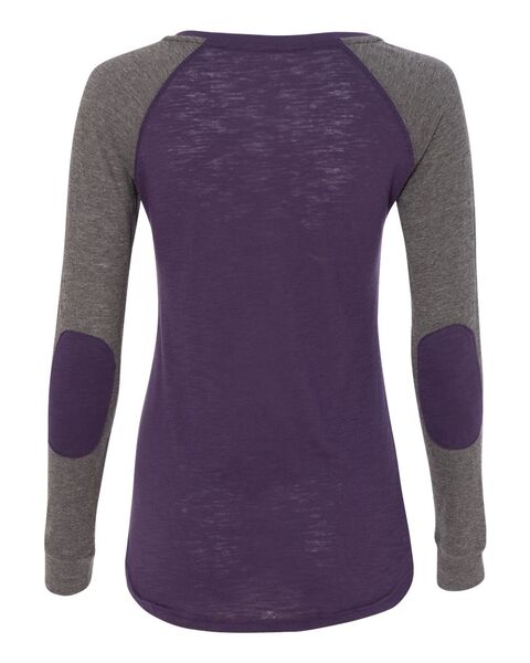 4.3 oz./yd_, 60/40 cotton/ polyester slub jersey Slub finish adds a subtle texture Feminine fit with a flattering neckline Contrast-color elbow patches...