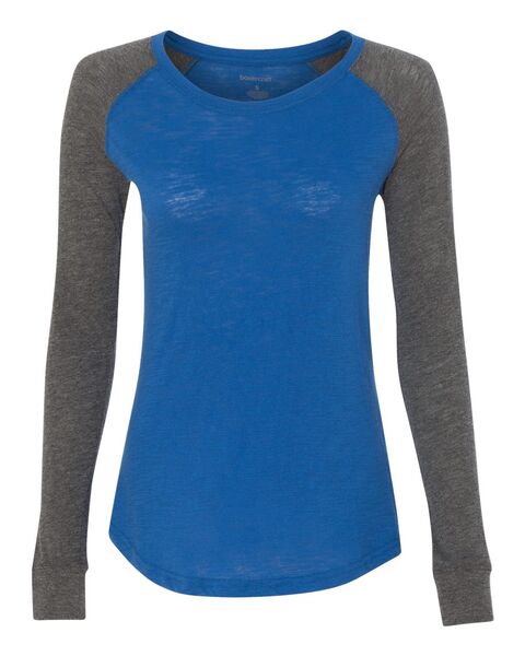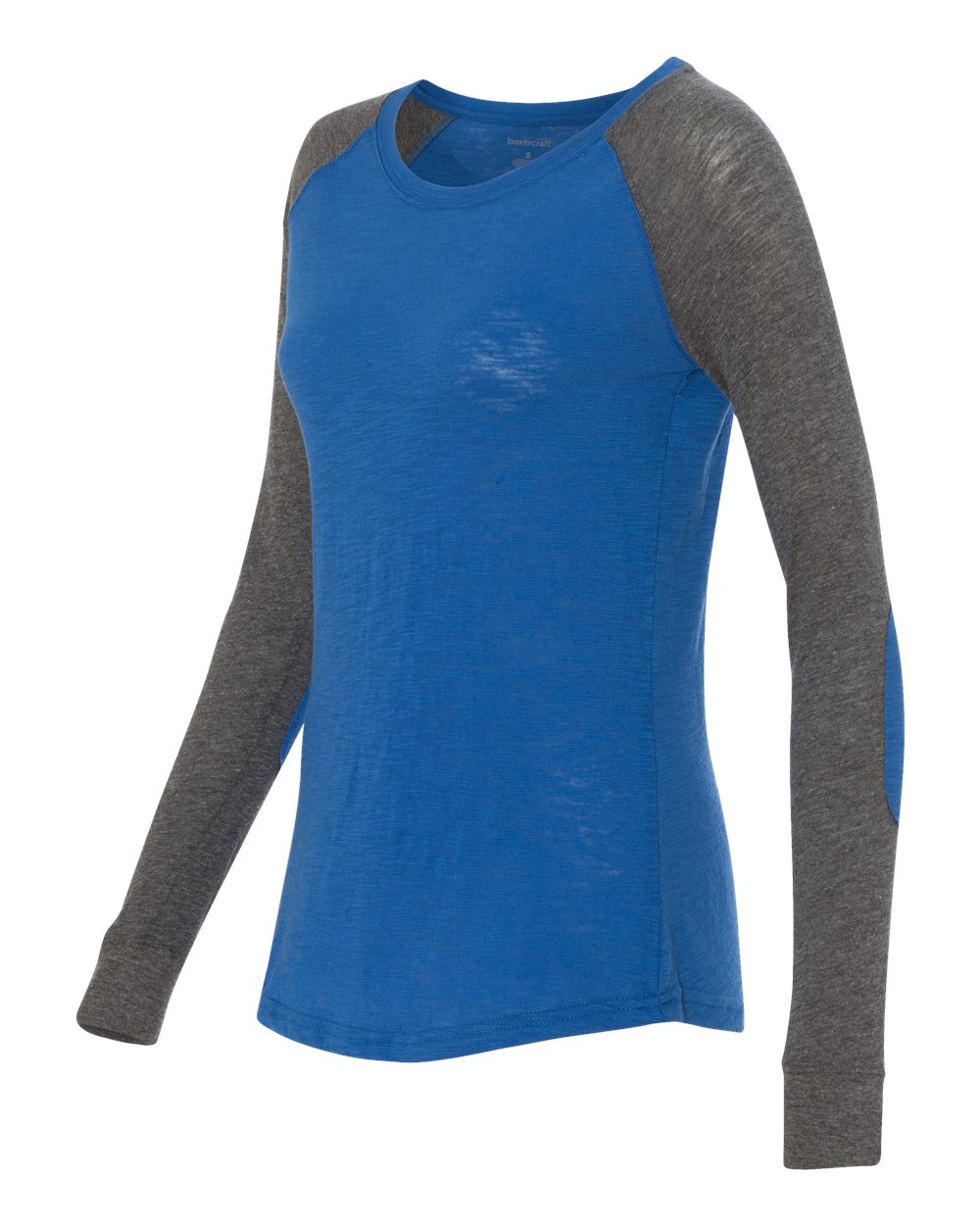4.3 oz./yd_, 60/40 cotton/ polyester slub jersey Slub finish adds a subtle texture Feminine fit with a flattering neckline Contrast-color elbow patches...