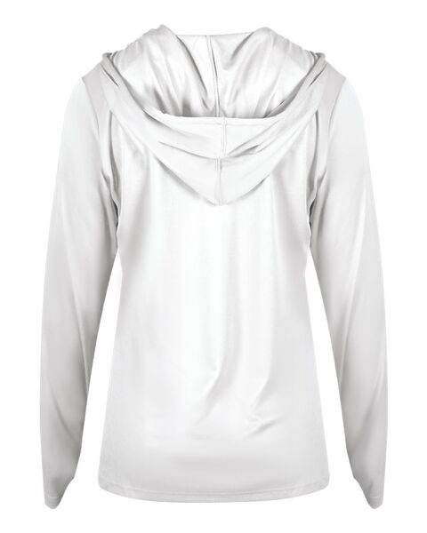 3.5 oz./yd_, 100% polyester moisture-management/antimicrobial fabric Self-fabric hood with drawcord- V-neck Contour silhouette Badger heat-seal logo on...