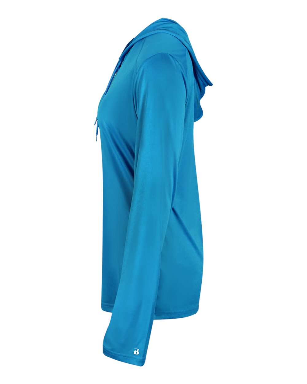 3.5 oz./yd_, 100% polyester moisture-management/antimicrobial fabric Self-fabric hood with drawcord- V-neck Contour silhouette Badger heat-seal logo on...