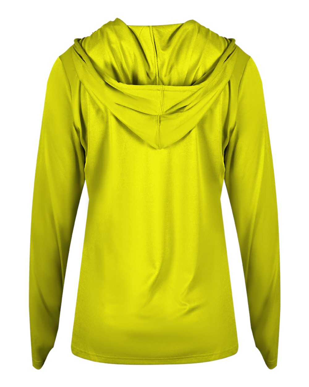 3.5 oz./yd_, 100% polyester moisture-management/antimicrobial fabric Self-fabric hood with drawcord- V-neck Contour silhouette Badger heat-seal logo on...
