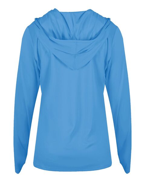 3.5 oz./yd_, 100% polyester moisture-management/antimicrobial fabric Self-fabric hood with drawcord- V-neck Contour silhouette Badger heat-seal logo on...