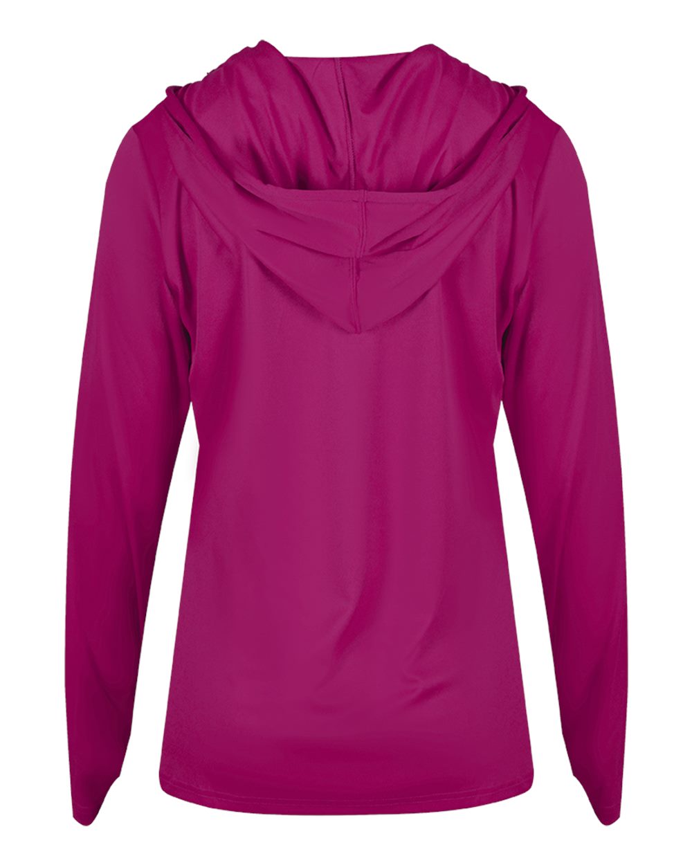 3.5 oz./yd_, 100% polyester moisture-management/antimicrobial fabric Self-fabric hood with drawcord- V-neck Contour silhouette Badger heat-seal logo on...