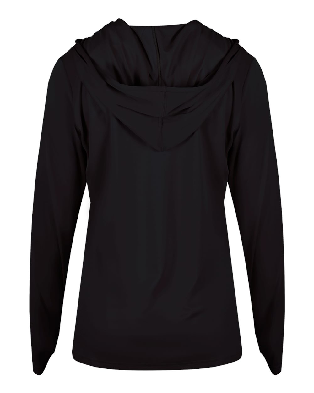 3.5 oz./yd_, 100% polyester moisture-management/antimicrobial fabric Self-fabric hood with drawcord- V-neck Contour silhouette Badger heat-seal logo on...