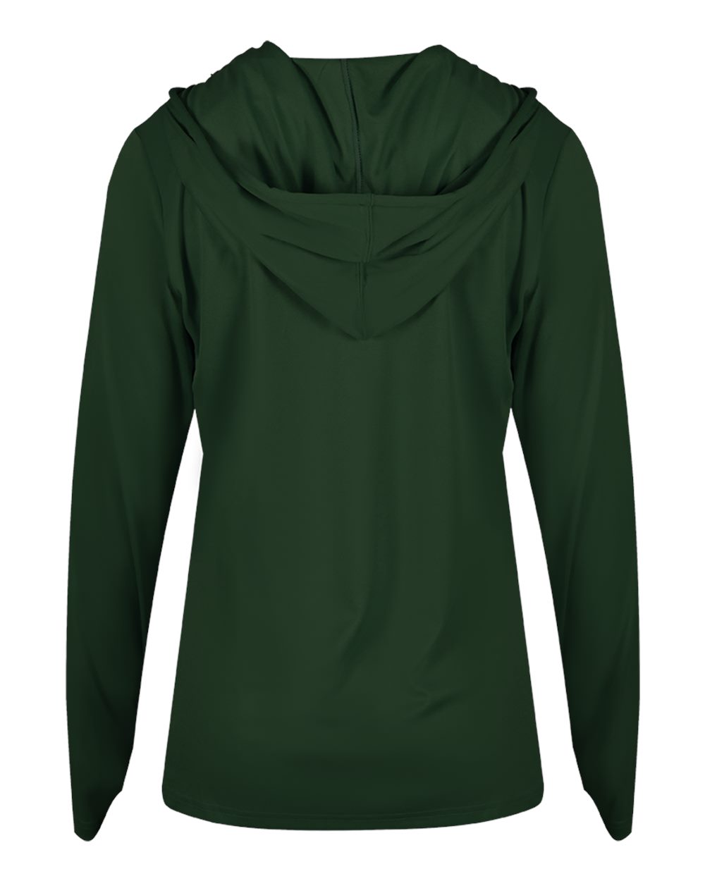 3.5 oz./yd_, 100% polyester moisture-management/antimicrobial fabric Self-fabric hood with drawcord- V-neck Contour silhouette Badger heat-seal logo on...