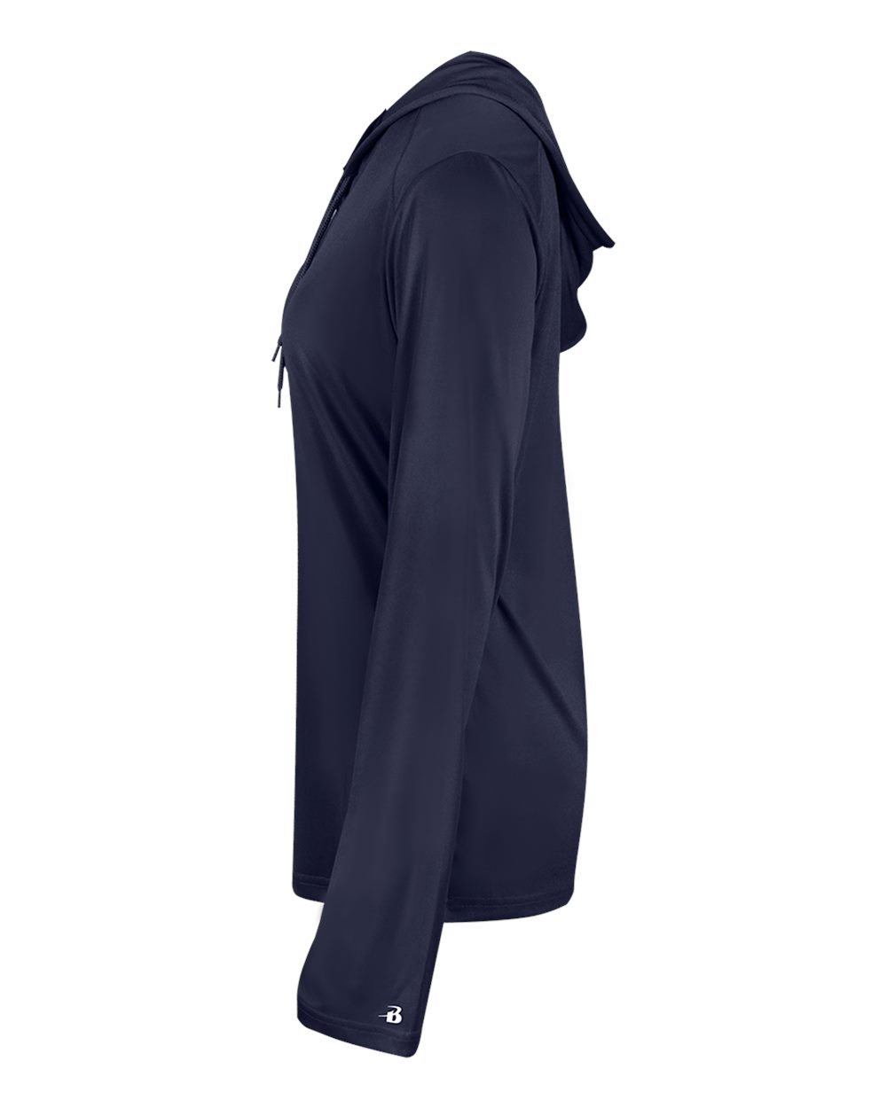 3.5 oz./yd_, 100% polyester moisture-management/antimicrobial fabric Self-fabric hood with drawcord- V-neck Contour silhouette Badger heat-seal logo on...