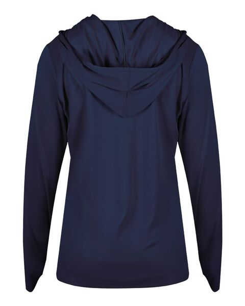 3.5 oz./yd_, 100% polyester moisture-management/antimicrobial fabric Self-fabric hood with drawcord- V-neck Contour silhouette Badger heat-seal logo on...