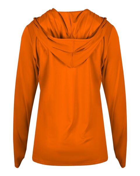 3.5 oz./yd_, 100% polyester moisture-management/antimicrobial fabric Self-fabric hood with drawcord- V-neck Contour silhouette Badger heat-seal logo on...