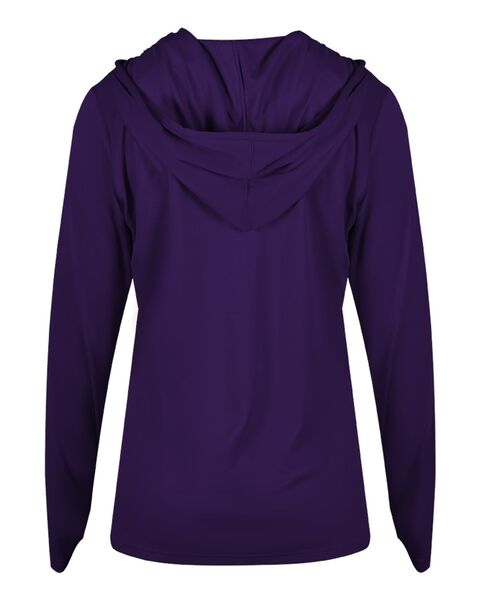 3.5 oz./yd_, 100% polyester moisture-management/antimicrobial fabric Self-fabric hood with drawcord- V-neck Contour silhouette Badger heat-seal logo on...