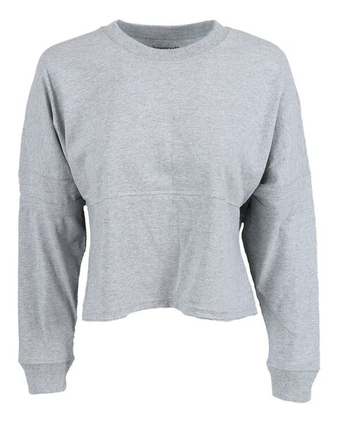 5.5 oz./yd_, 100% cotton ring-spun jersey Oxford Heather: 90/10 cotton/polyester Relaxed, oversize fit Crop top shape Double athletic sleeve stripes...